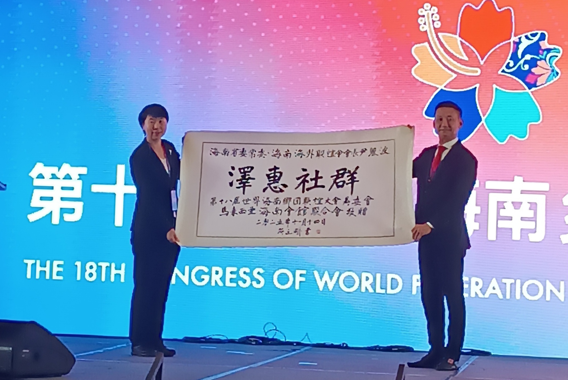 她希望世界海南乡团联谊大会继续发挥桥梁与纽带作用,团结引领世界乡亲,成为海南自贸港建设的“参与者”、“推介者”和“贡献者”。大家应利用自身优势和影响力,积极向住在国社会各界宣传海南、推介海南,讲好海南故事,提升海南的国际知名度与美誉度。