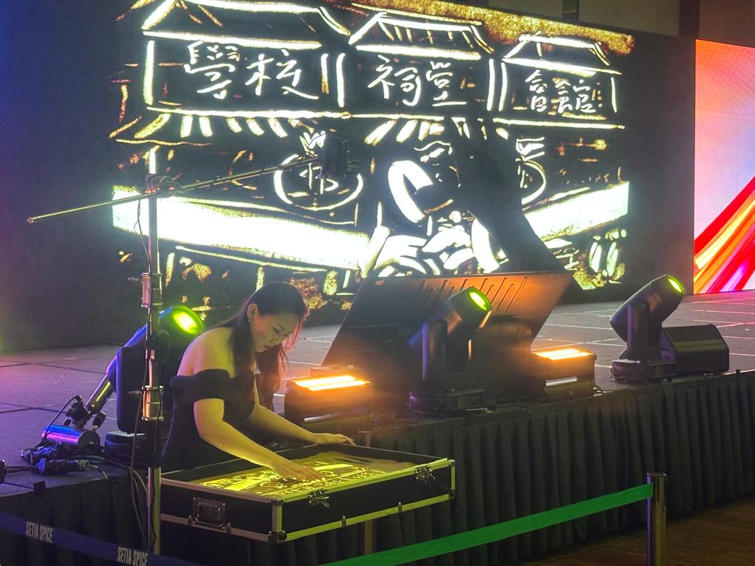 开幕表演由沙画艺术家黄卉茵以沙画呈现“海南下南洋”,诉说先辈远渡重洋、闯荡南洋的历史篇章;来自菩提国民型中学的二十四节令鼓表演,气势磅礴,鼓声震撼全场,振奋人心。