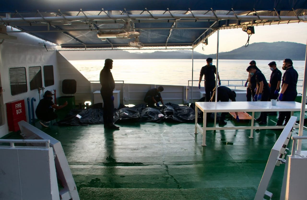 浮罗交怡警区主任凯鲁阿兹哈表示,这些遗体包括10名成年男子、1 名男童以及1名女童。