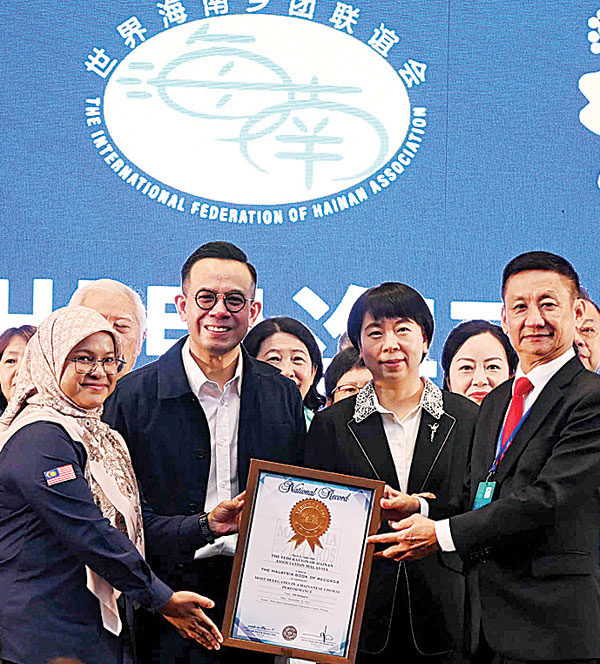 来自世界各地的300名海南乡亲,在第18届世界海南乡团联谊大会闭幕仪式上高声合唱海南歌曲《乡音代代传》,场面壮观感人,成功创下《大马纪录大全》“最多海南代表参与海南歌曲大合唱”的纪录!