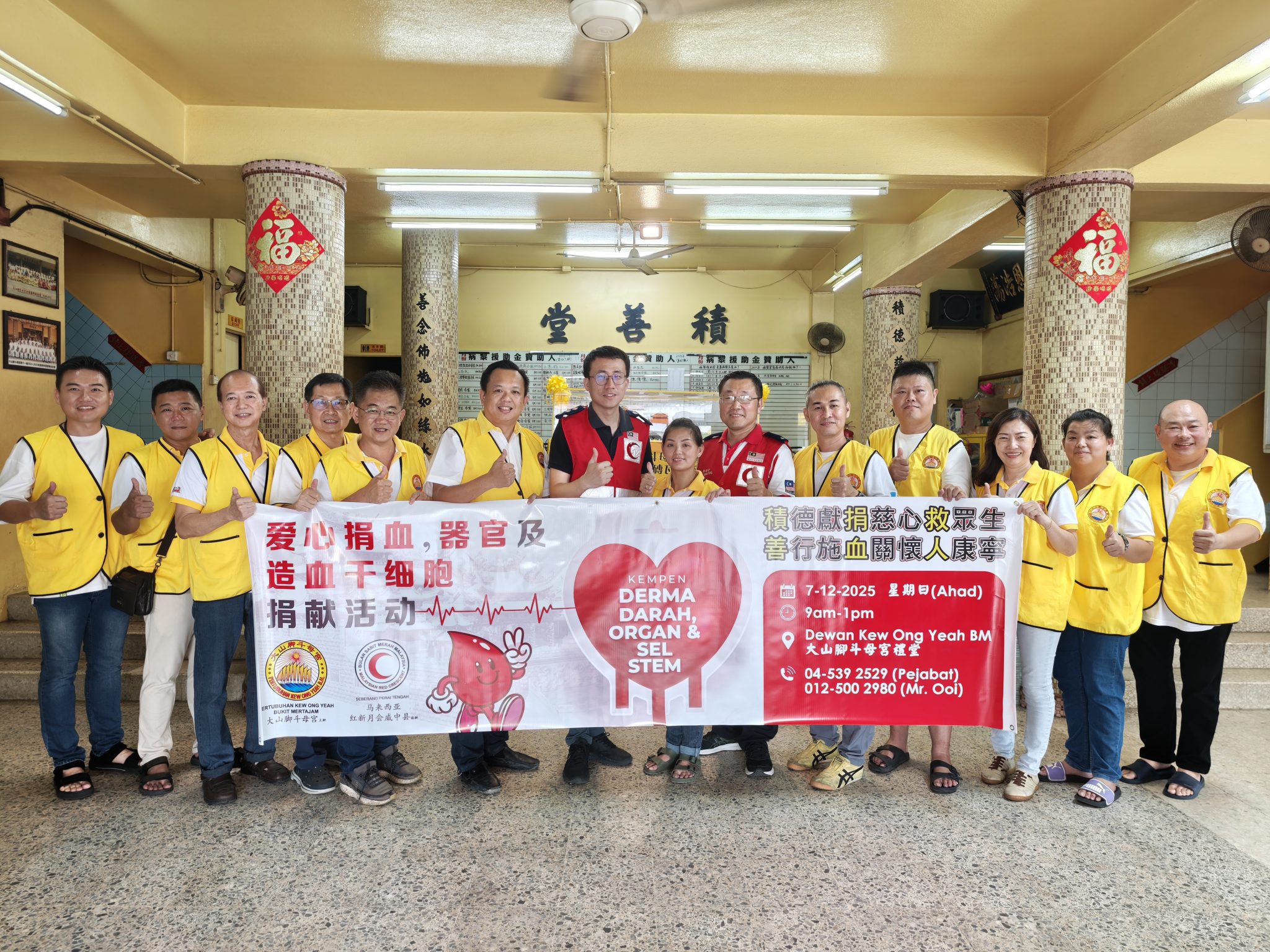 大山脚斗母宫携手威中红新月会,将于12月7日(周日)举办第十六届爱心捐血、器官及造血干细胞捐献活动,主題为“積德献捐慈心救众生、善行施血关怀人康宁”,为两家医院补充血库。