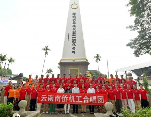 最后,云南南侨机工学会合唱团合唱《槟榔屿纪念碑碑歌》及在槟榔屿华侨抗战殉职机工暨罹难同胞纪念碑前合影。