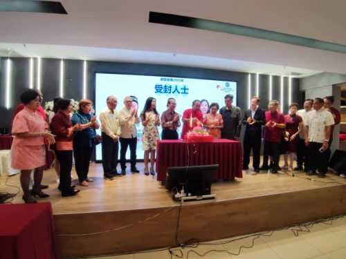 宴上,大会赠送牌匾给予受封PJM的梁綵娗、受封拿督勋衔的名誉主席林国强,以及受封拿督勋衔的名誉主席誉玉芝。