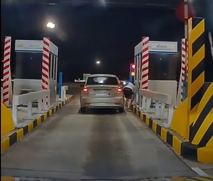 网民周二(18日)在脸书社群“DashCam Owners Malaysia”分享一则视频。从视频画面可见,一名男子开着宝腾赛佳汽车,抵达收费站时,突然开门下车,往地上方向捡东西,相信是捡起掉在地上的一触即通卡。