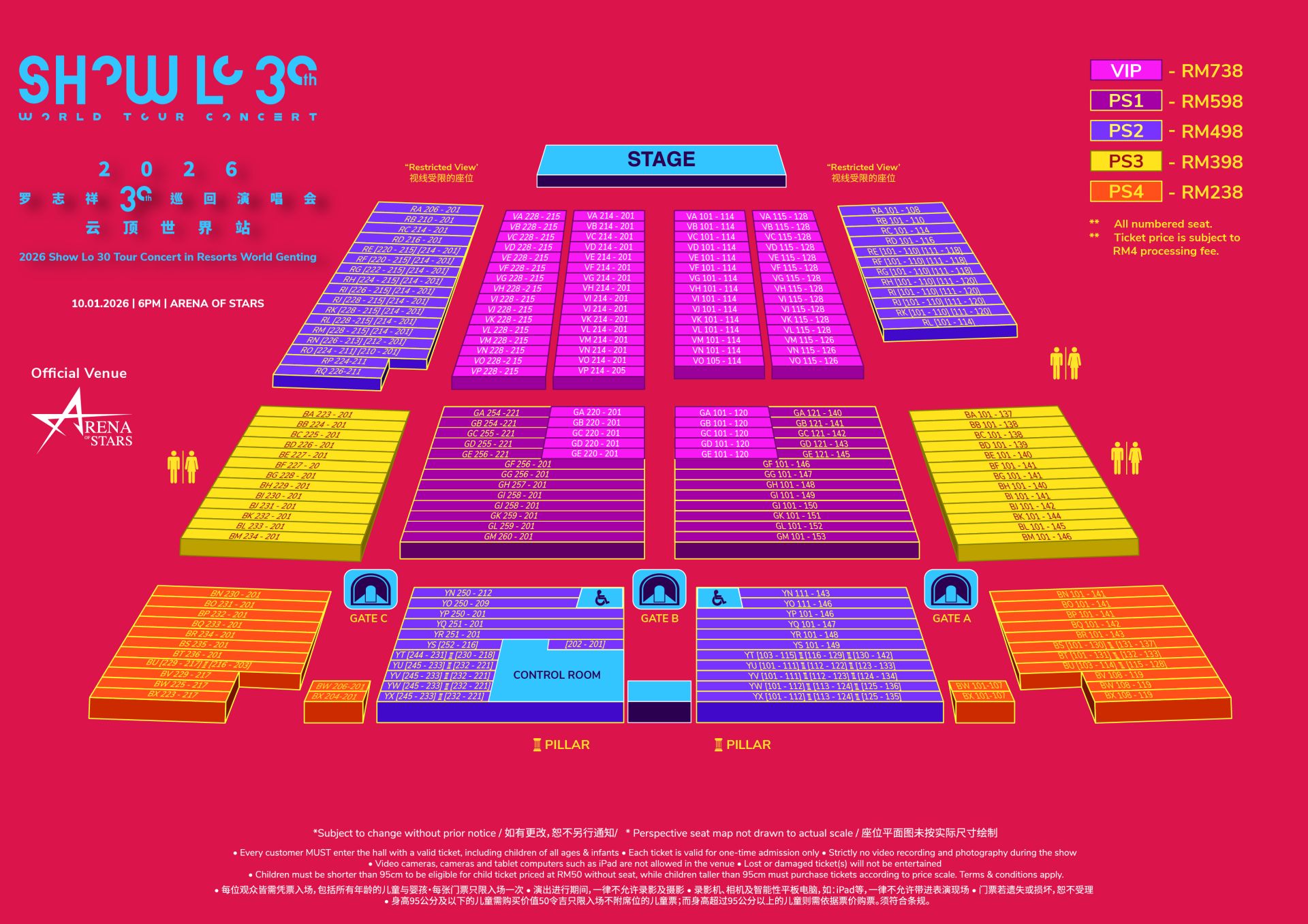 演唱会门票售价为738令吉(VIP)、598令吉(PS1)、498令吉(PS2)、398令吉(PS3)及238令吉(PS4),所有票价未包含4令吉手续费。门票将于11月19日中午12时起正式公开发售。