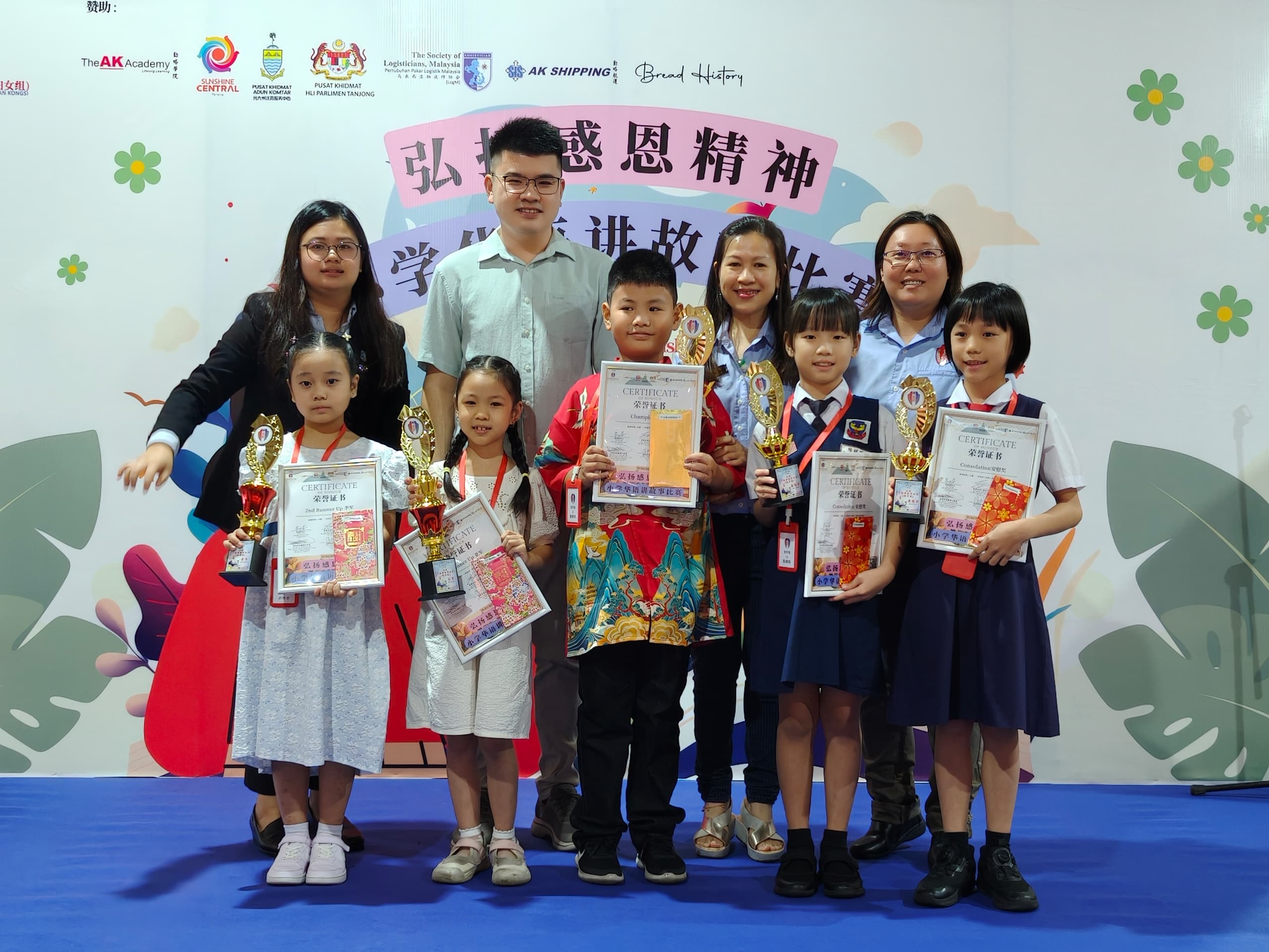 曾祺莹(后排左起)、林伟伦,曾碧音及曾慧婷与低年组优胜者合照。