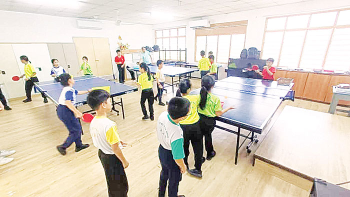 她解释,因为学校坐落在海边,所以风力很大,很多活动例如羽毛球、乒乓等都无法在“开放式”礼堂进行。目前设有3个乒乓桌,大概20名学生、老师,只能躲在狭小的课室进行活动。