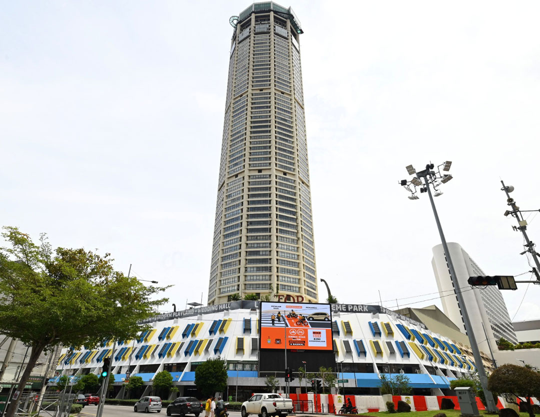 光大道(Penang Walk)工程完成,已成为光大的全新亮点,光大垫楼(商业楼层)粉刷工作已完成,垫楼墙身采用蓝、黄二色,灵感来自槟州州旗主色,就为重展光大地标地位。(示意图)。