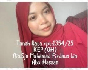 他表示,鲁奴苏哈达失踪时身穿绿黑色长袖衣、长裤与黑鞋,并配戴白色头巾及背着黑色背包;而诺达米雅则身穿黑色长袖衣、长裤和黑色鞋子,并配戴黑色头巾及背着黑色背包。