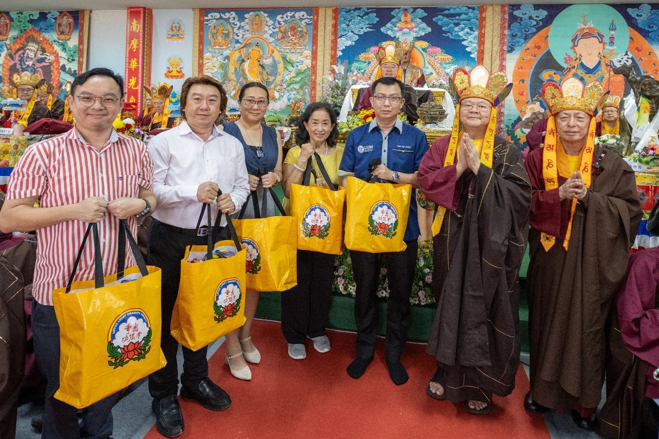 延续“活动不忘布施”传统,马来西亚真佛宗密教总会在护摩法会前,于世界真佛宗宗务委员会会长莲花程祖上师见证下,由总会长释莲太上师移交总值马币10万令吉的慈善资源。其中7万令吉生活物资惠及马来西亚北方大学语文、文明暨哲学院、华光功德会(霹雳州分会)、金宝福利部等多地教育与慈善机构;另3万令吉助学金资助务边新咖啡山国民型华文小学、拉湾古打华小及文明华小共300名清寒学子,落实教育关怀。