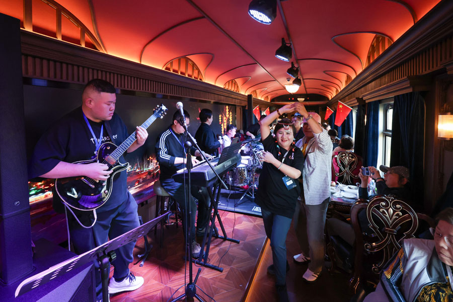 她续道,每节载客车厢都有吧台,提供红白葡萄酒、啤酒、咖啡和果汁等免费饮品及小食,皆可无限畅享;亦设有精彩表演,从现场乐队到古筝演奏,为乘客带来视听盛宴。