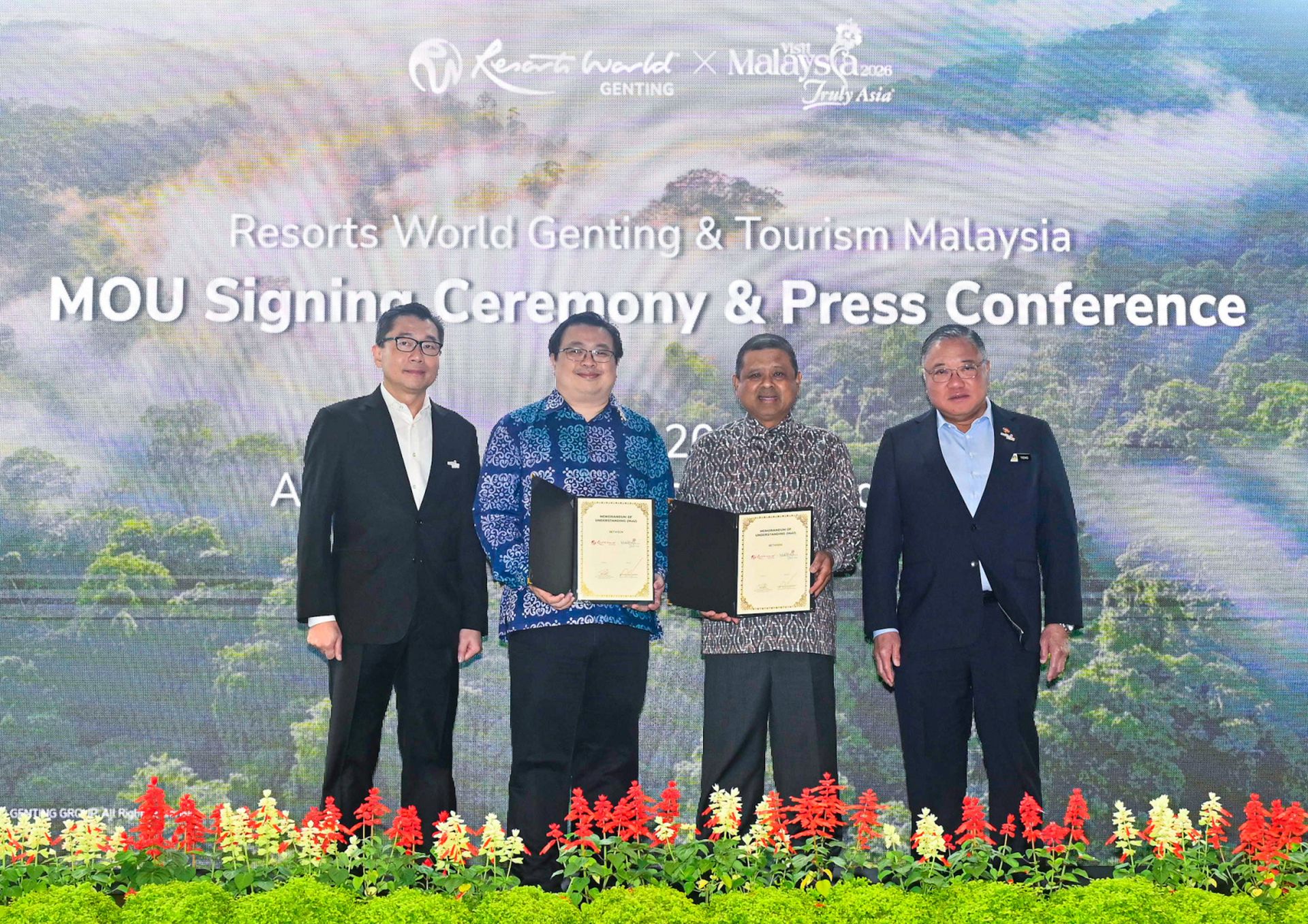 此次合作将以云顶世界的世界级设施、酒店资源与生态项目为基础,强化马来西亚在全球旅游市场的竞争力,并为2026旅游年引入更多自然、文化与教育元素。备忘录由云顶世界营销与公关部执行副总裁李德龙与马来西亚旅游局总监拿督马诺哈兰签署。