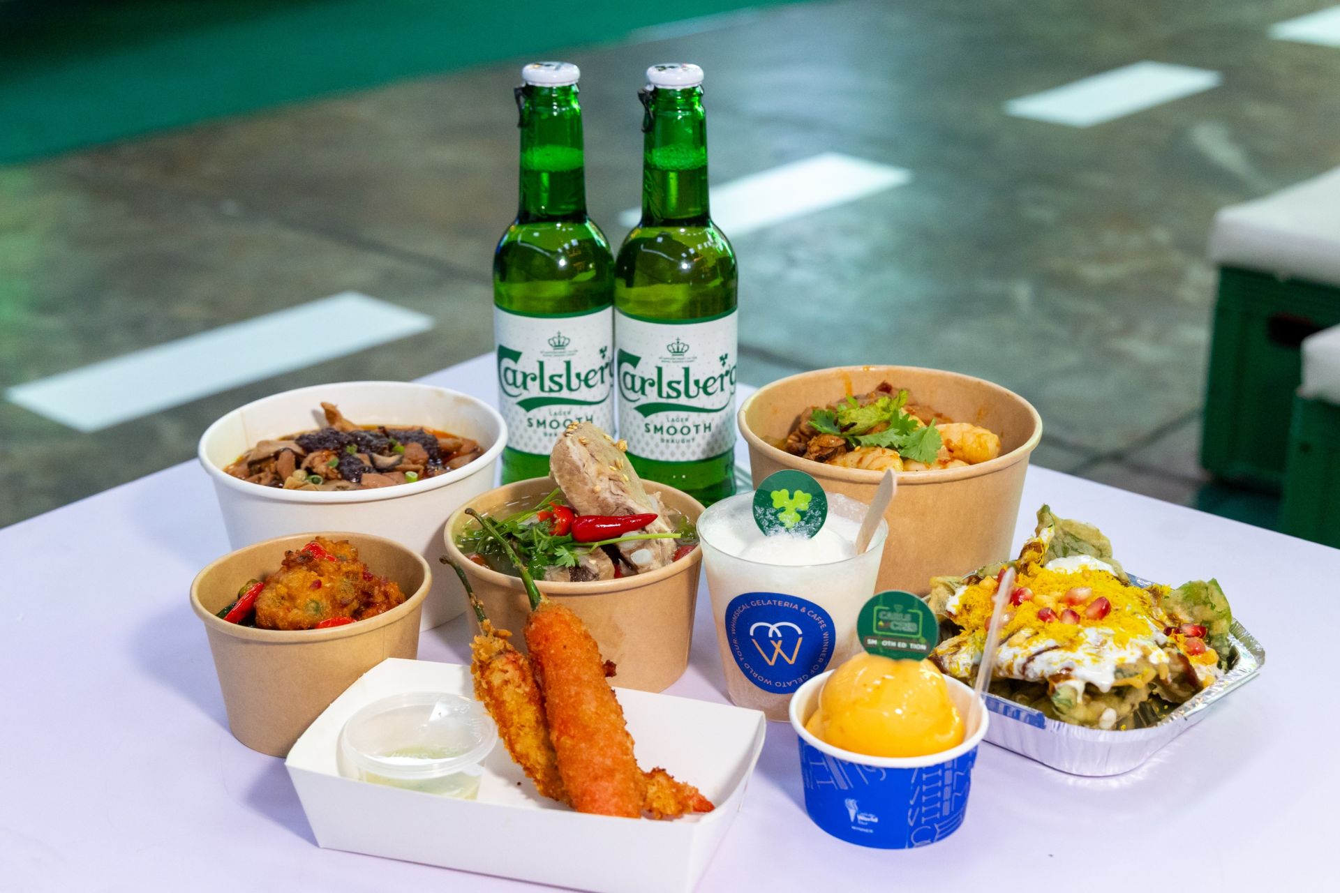 在热闹氛围中,来宾尽情享受香辣美食与顺滑冰爽的Carlsberg Smooth Draught,感受味蕾与啤酒的完美平衡。