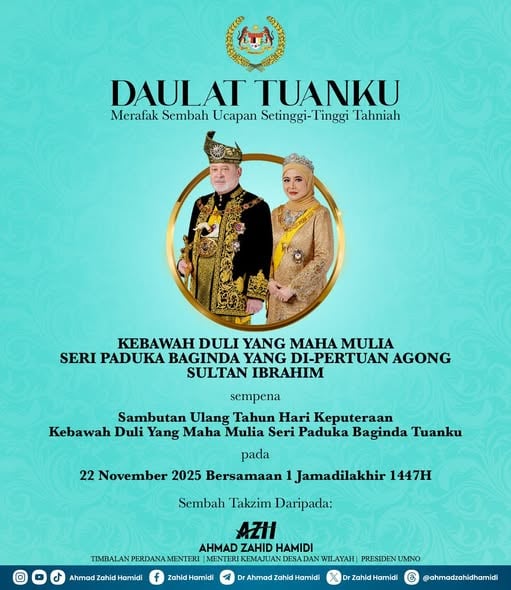 另一方面,阿末扎希也通过脸书祝愿陛下健康长寿、福泽深厚,并表示陛下肩负守护国家与人民的崇高使命,祈愿其在职责中继续蒙受祝福。