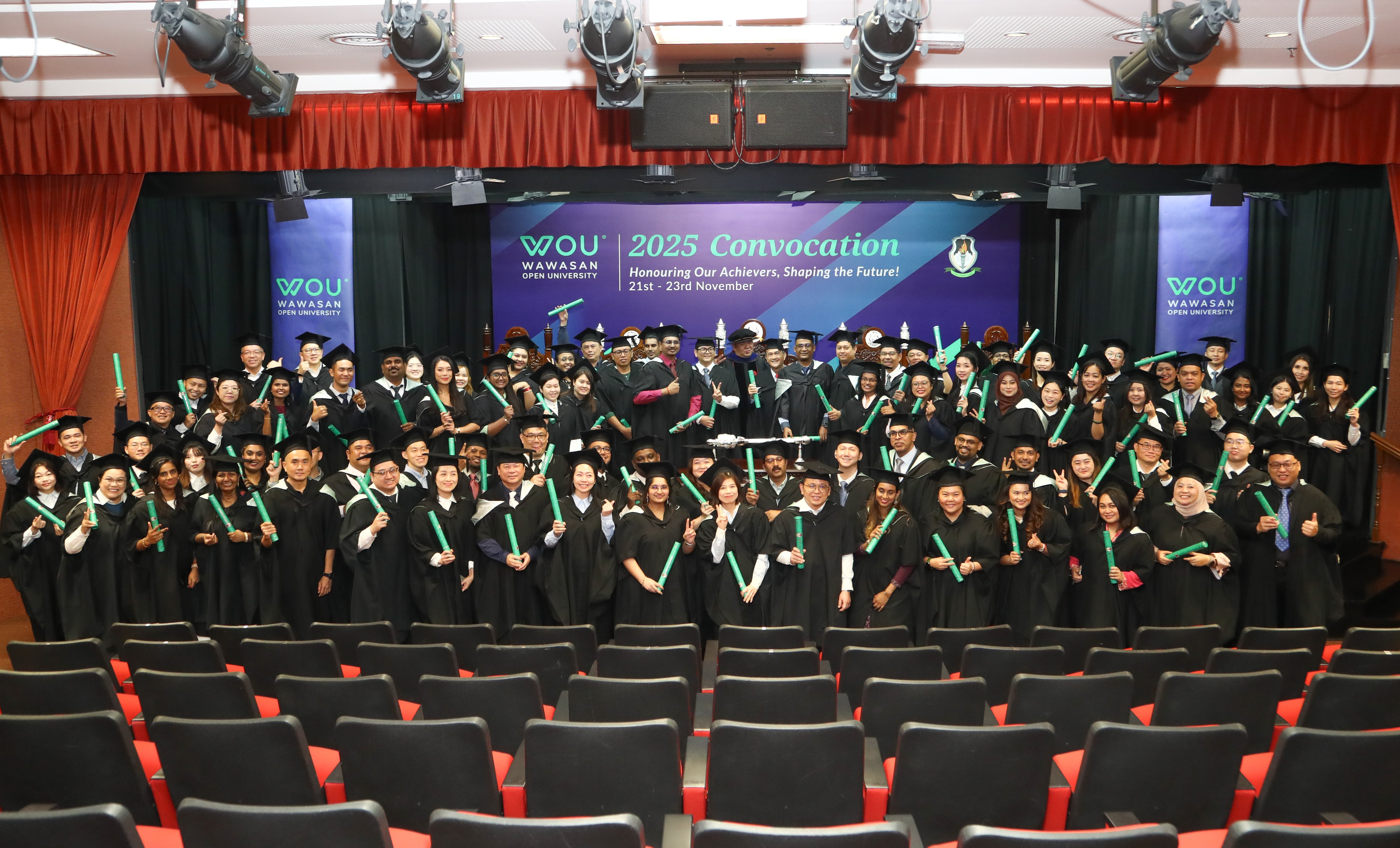 (槟城22日讯)宏愿开放大学(WOU)从21至23日举行第16届毕业典礼,逾750名在职专业人士顺利毕业。透过灵活的学习模式,他们无需离开职场,便成功提升技能、推进职业发展。