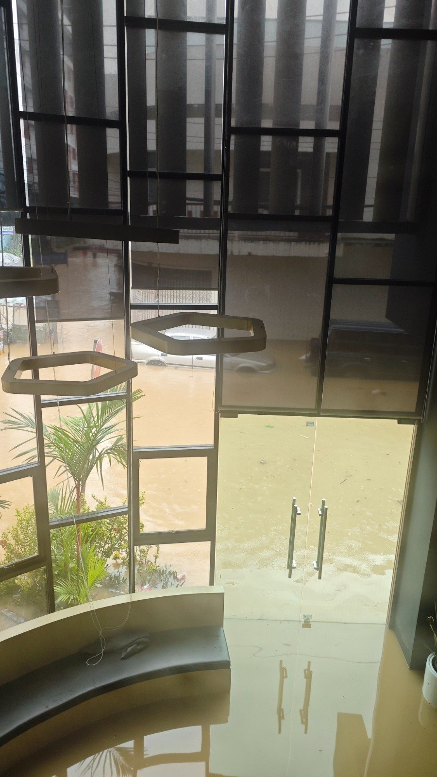 受困者拍摄到酒店外的水灾情况,发现水位依然很深。