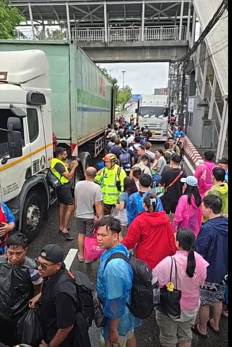 从分享的视频可见,现场有数百名大马公民排队,等待乘坐货柜罗里离开合艾返回大马。