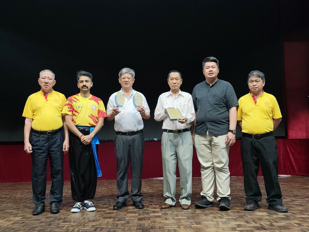 该社也庆贺副主席骆秋隆荣膺DJN准拿督勋衔,由社主席郑荣森赠送纪念品,并由顾问拿督骆秋胡,新加坡少林国术总会会长张国生,秘书长陈志发,该社副总务王来福陪同。
