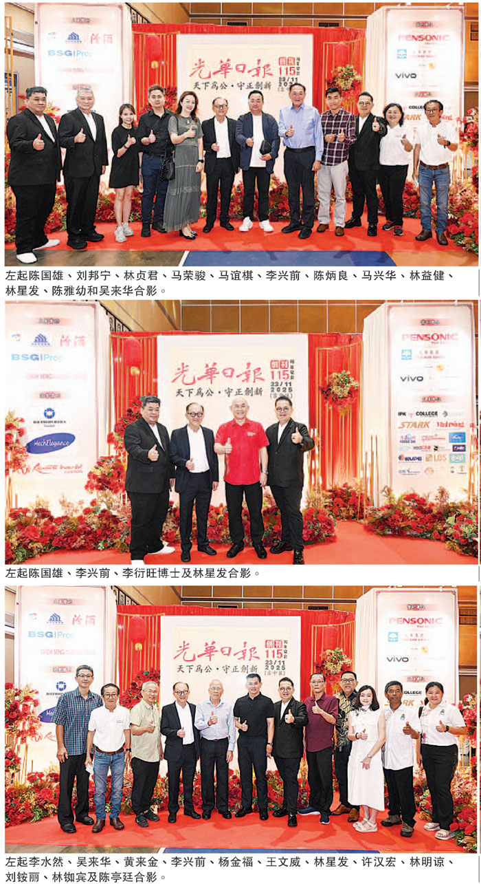 《光华日报》总经理拿督李兴前指出,115年的岁月跨越一个多世纪,《光华日报》从1910年12月20日创刊以来,便深深扎根在这片土地,与时代同呼吸,与华社共命运。