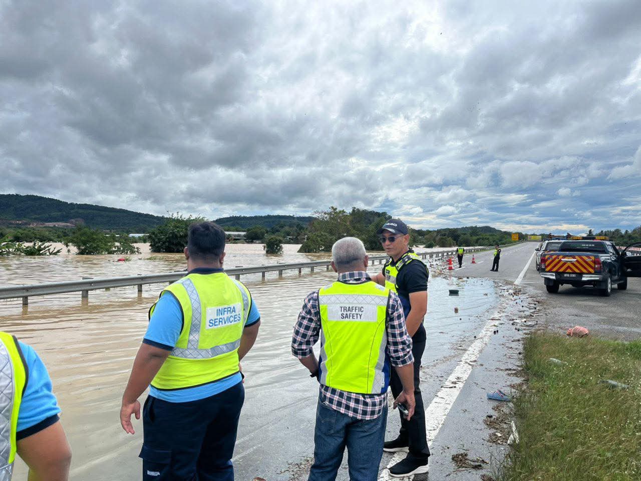 古邦巴素警方在脸书贴文指出,往南部方向的大道路段也因水位上升而暂时关闭。当局呼吁所有高速公路使用者提前从玛劳/日得拉出口驶出,并可在达鲁阿曼入口重新进入高速大道。