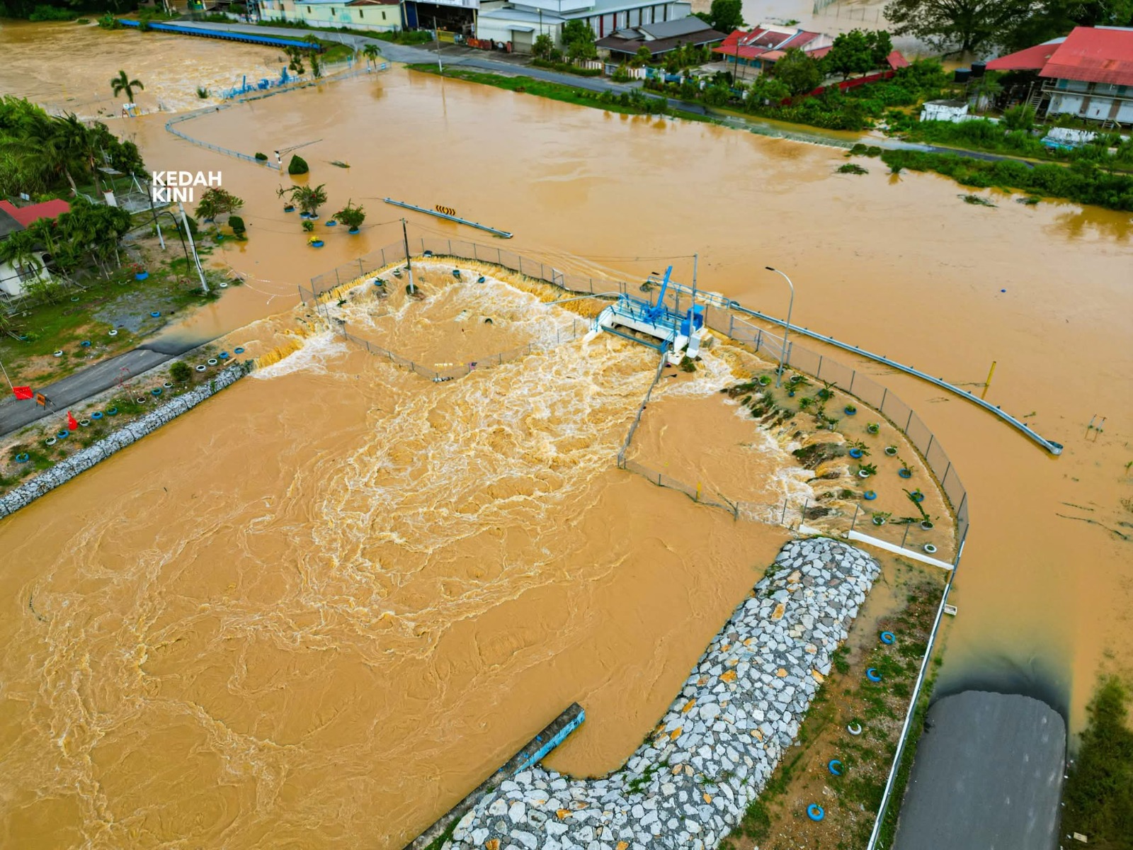 根据“Kedah Kini”脸书专页贴文指出,当地的水位上升并已溢出周围地区,当地居民受促时刻提高警惕,并随时关注最新情况,以避免任何风险。