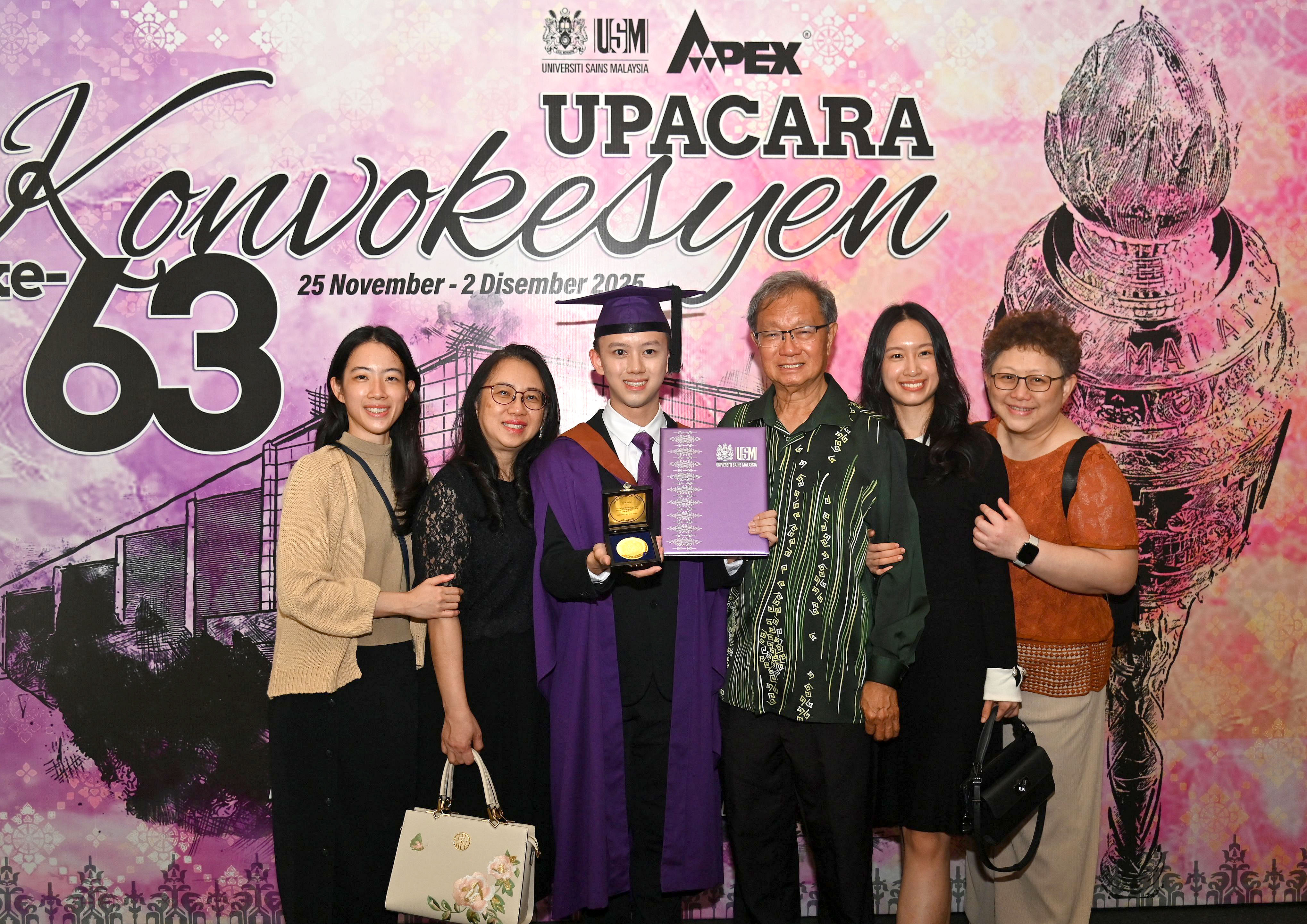 玻璃市拉惹端姑赛希拉鲁丁颁发“名誉校长金牌奖”及毕业证书予刘维涵。