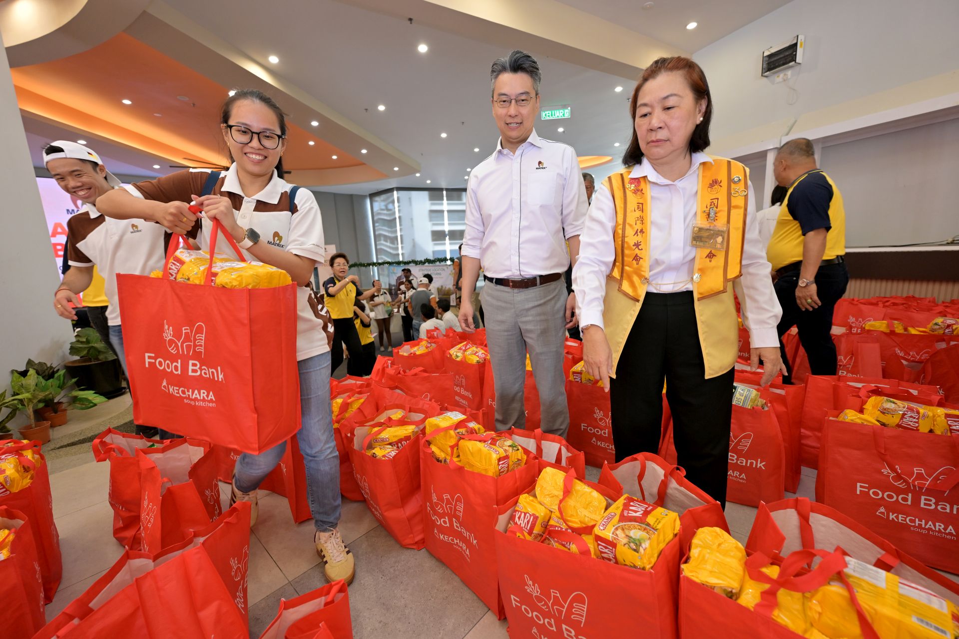 金群利集团(Matrix Concepts)日前与国际佛光会及克切拉香积厨(Kechara Soup Kitchen)再次携手合作,在芙蓉花城综合体育中心(Arena Seremban)展开第3轮粮食援助活动,共同为40户来自森美兰芙蓉、新那旺及安邦岸地区的弱势家庭送上温暖。
