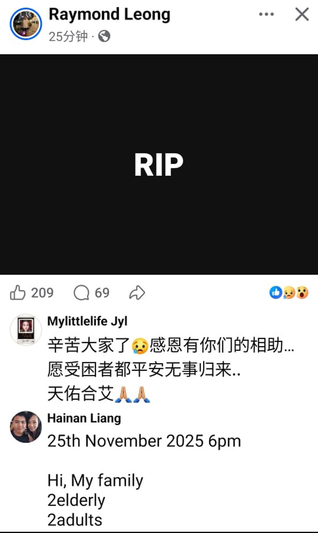 马来西亚双溪大年义消防队队长梁明达于周三早上在脸书发布黑底白字“RIP”帖文,纷纷遭网友追问发生什么事?