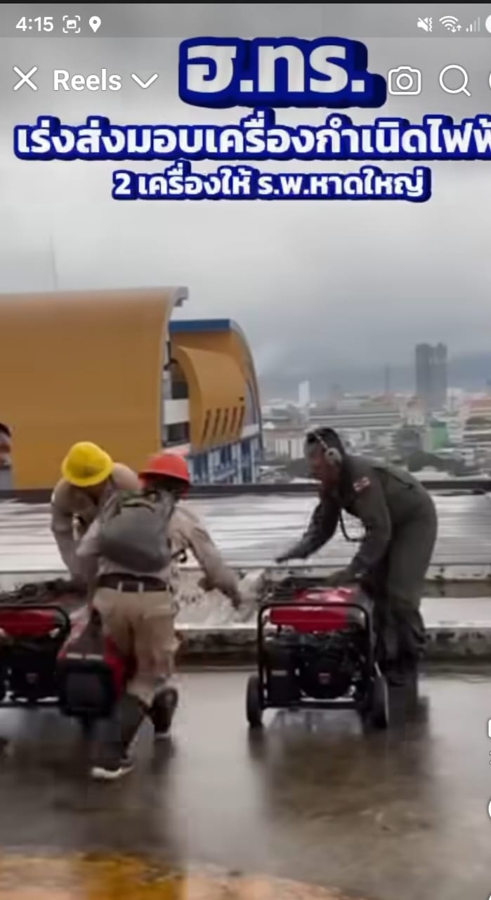 海军救援人员使用直升机将2部发电机及食物运往合艾医院,以让遭遇停电的医院可以继续运作,照顾医院内的病人。