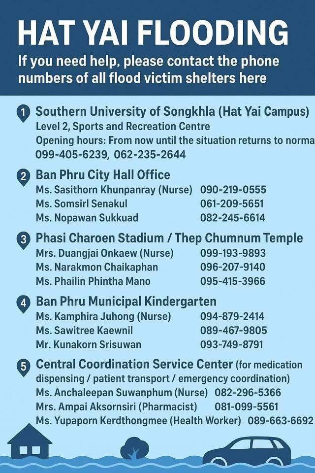 他表示,其服务中心将整理自脸书和登门求助的民众信息,整理后发给已在合艾的大马救援队。