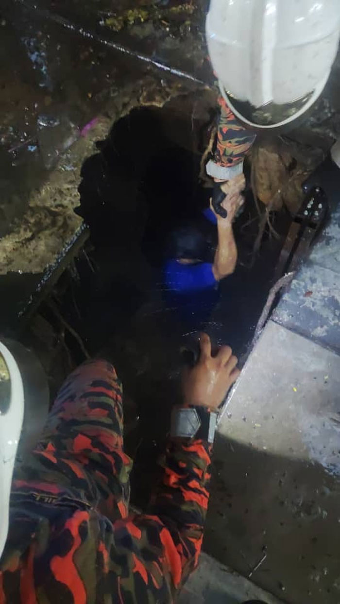 救援人员立即展开搜救,并于傍晚6时54分成功救出受困的一名五十多岁巫裔男子。
