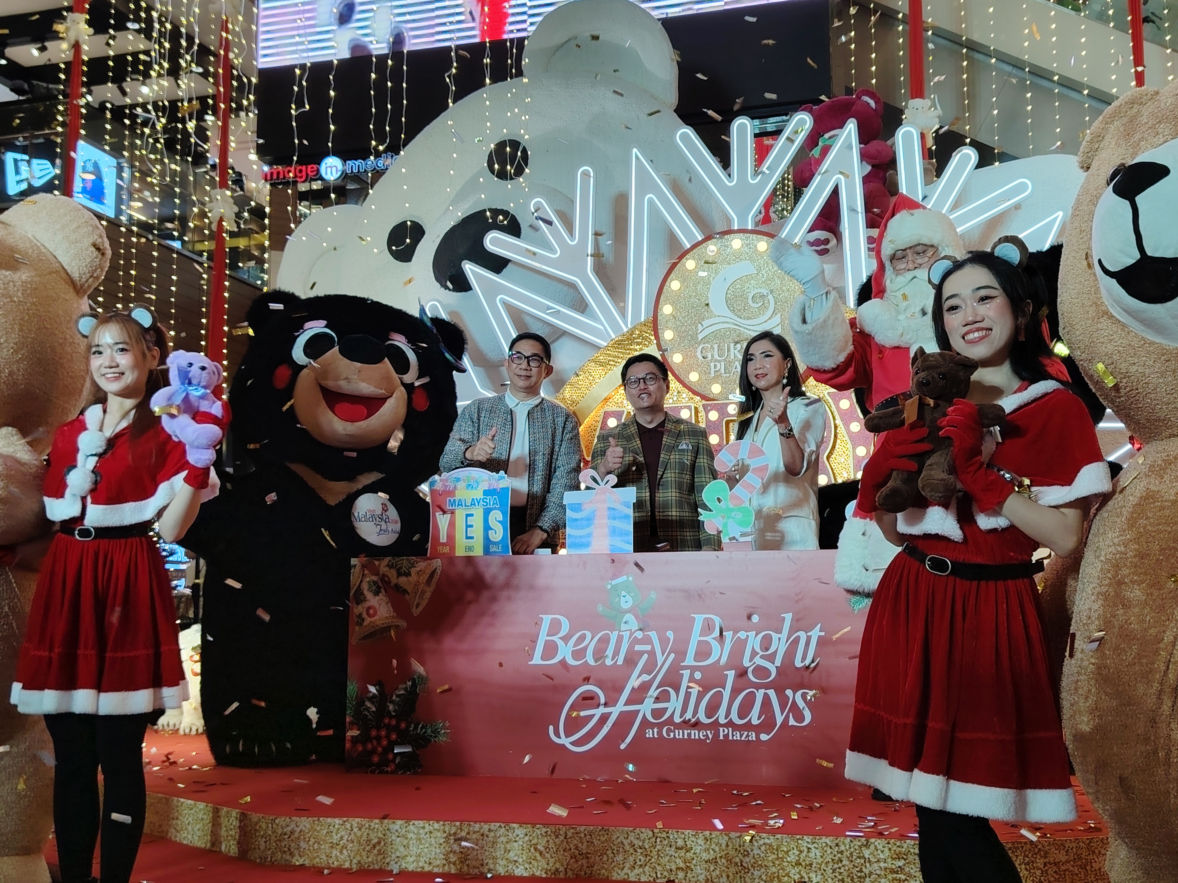 槟城合您广场(Gurney Plaza)今年圣诞以“熊熊缤纷假日”(Bear-y Bright Holidays)为主题,中央大庭化身浪漫童话雪境,巨型雪熊、玫瑰熊与三层白熊塔营造梦幻景致,成为槟城最抢眼的节庆焦点。缤纷市集、雪花体验、圣诞老人登场与多项年终购物优惠同步启动,为公众开启一季充满惊喜的节日盛典。