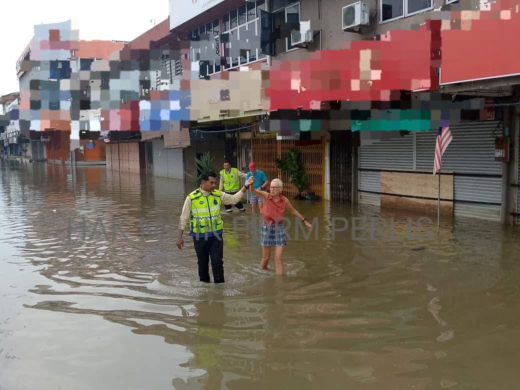 根据玻璃市警方周五下午在脸书发帖及上载照片,巡警正在加央一带执行洪灾巡逻任务,经过该酒店附近时,突然听到有人大声呼喊“救命”,随即前往查看,发现一对外国游客被困在酒店内,因铁拉闸门受阻无法开启。