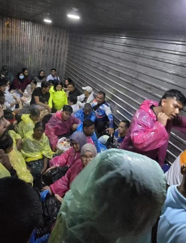 “所以,在回到大马后,一些队员们也和其他义消队汇合,带上装备及物资,在周一再前往泰南。同时,也准备了大型罗里进入灾区,分递次将受困的大马人载到关口,并安排其他交通工具(将他们)载送回国。”