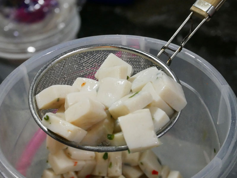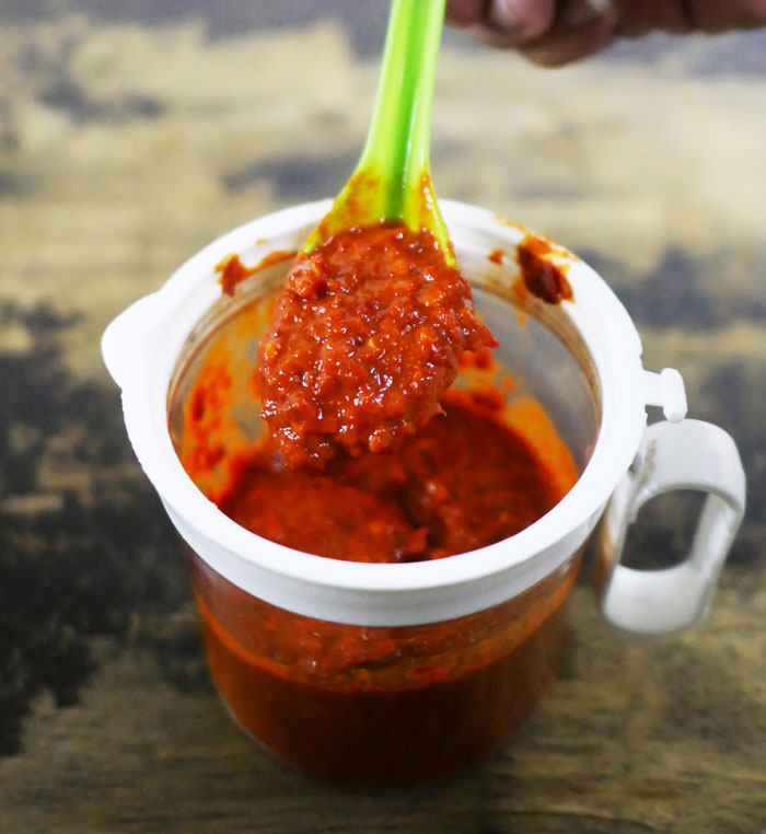 “我每天都会搅3公斤参峇,辣椒和辣椒干一起打,日日新鲜现做,香味才够足。” 简单一句话,却道尽坚持。