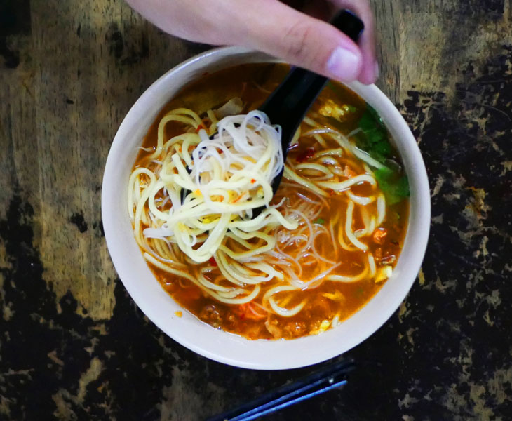 面条选择多样,可选黄面、米粉、美极面或米粉面。冯英心推荐:“最好吃是黄面,连米粉都不用加,吃出淋面最地道的好味。”