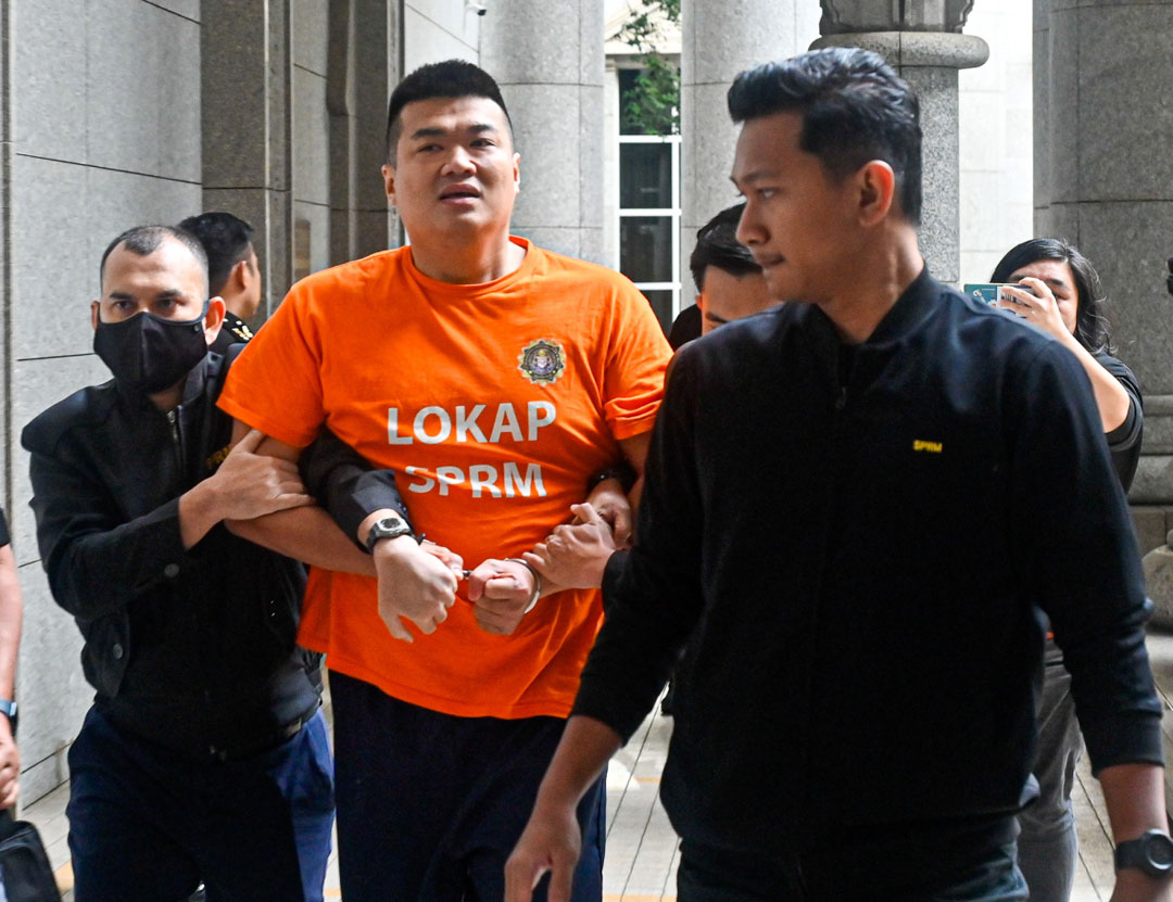 根据记者观察,两人乘坐同一辆反贪会的车抵达布城法庭,两人皆穿上反贪会扣留所的橙色扣留衣,并双手戴上手铐。