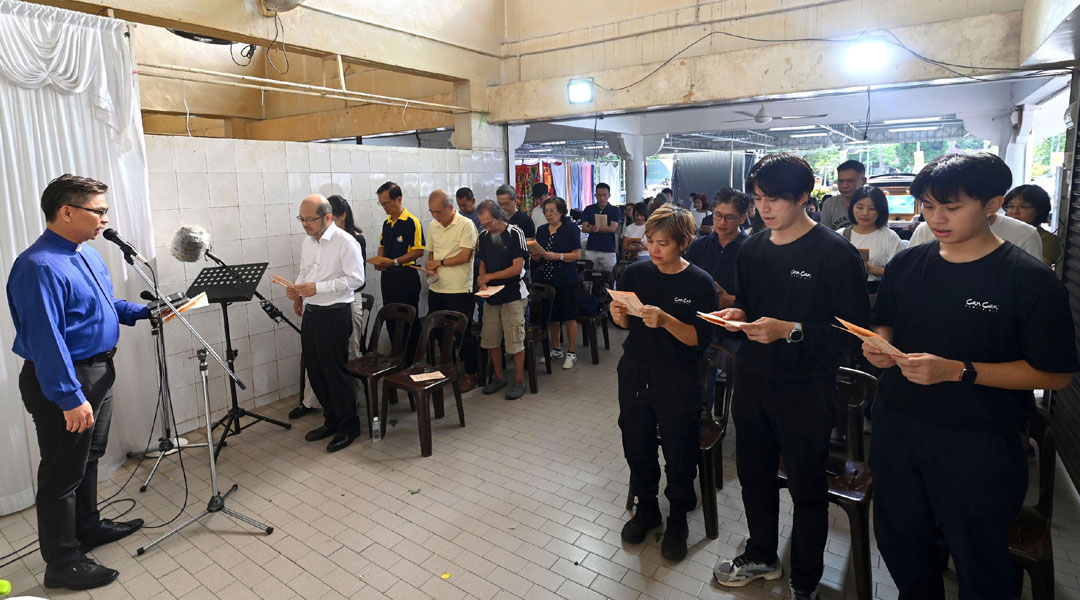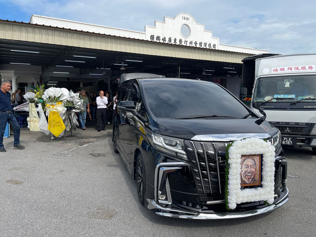 家人在举殡日也带来陈楚淮生前的代步工具-电动脚车、椅子等,大家在其灵位前拍张合照留念。而电动脚车,就是陪伴陈楚淮经常穿梭在乔治市画壁画时用的。