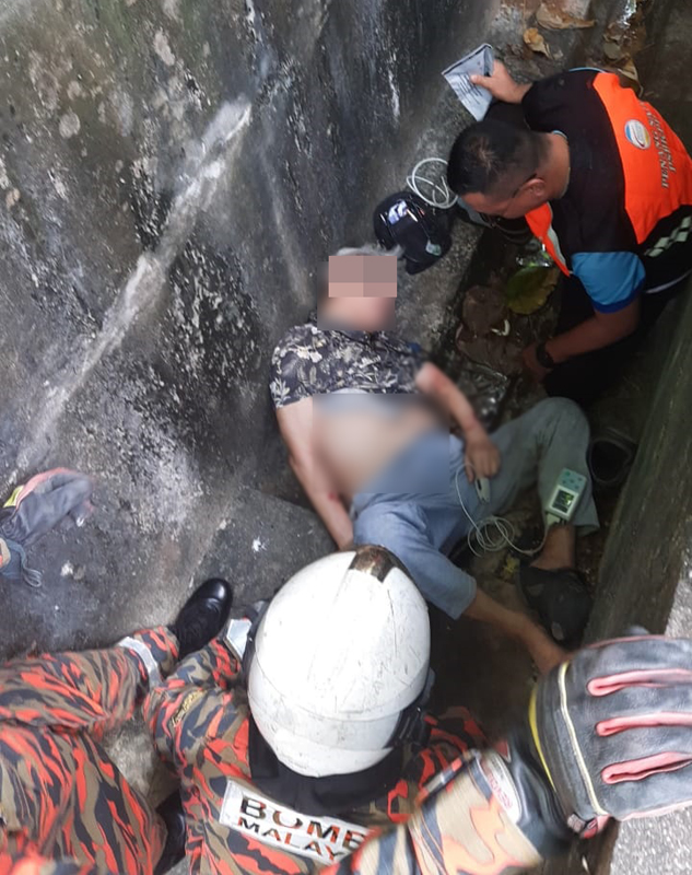 事发时,该男子不慎掉进沟渠内,相信因受伤动弹不得,路人见状后,急忙电召消拯局到场协助。