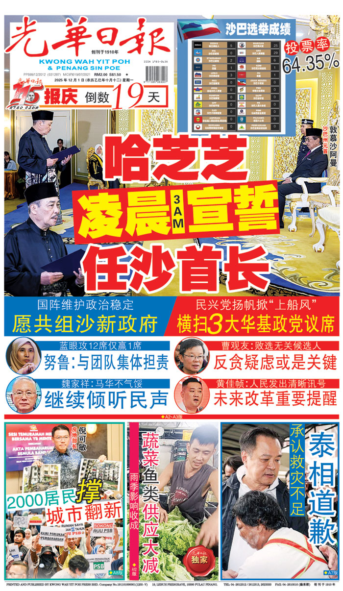 【A1新闻头条】2025年12月1日(早报)