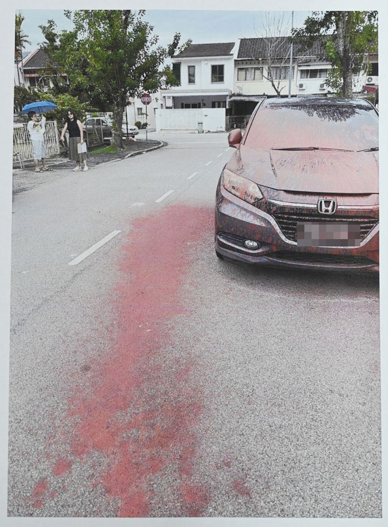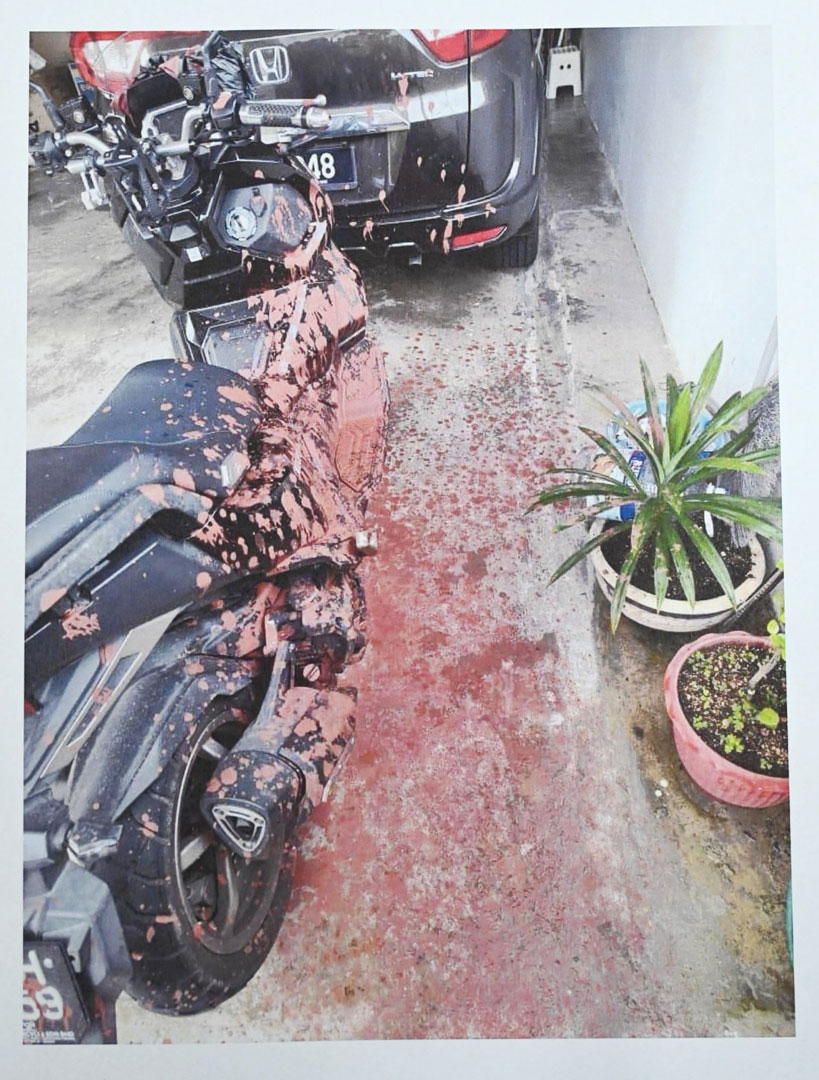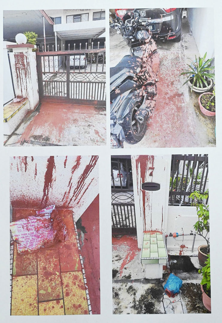 她周一(1日)召开记者会时,展示多张受害者及邻居住家铁门摩托车及汽车被泼漆照片,以及多条含恐吓威胁的WhatsApp信息。