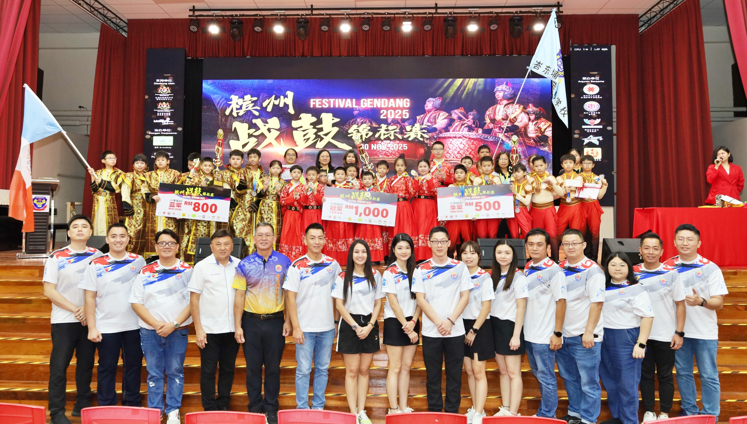 2025年槟州战鼓锦标赛圆满落幕,槟城玄岡健身馆以9.08高分摘得公开组冠军、最受欢迎队伍人气奖及最佳道具奖三大奖项;槟城卿田小学A队以8.58分夺得小学组冠军、该校B队则夺下亚军及最佳道具奖。