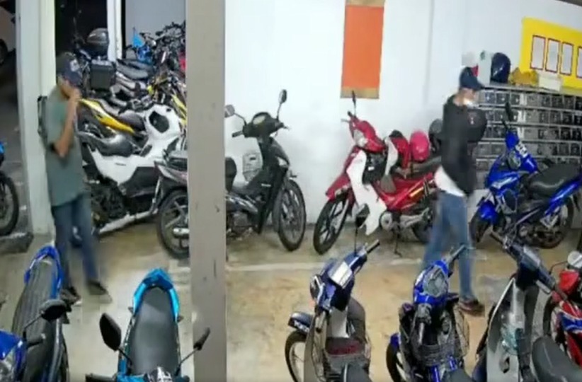 根据网民 geehanim 将上传至社交媒体《Penang Kini》的视频画面显示,两名贼徒一前一后步入组屋停车场的摩托泊车位,两人分工,一人看把风,明显在物色目标。