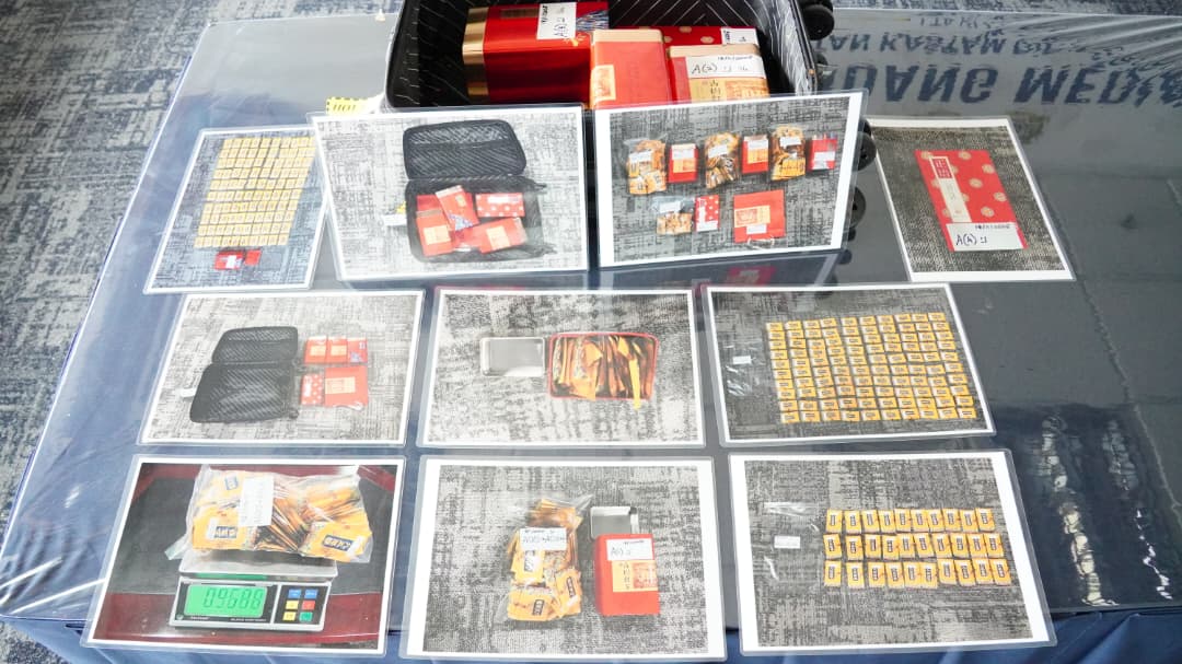 他周三发表文告,根据检查结果,当局在中国籍疑犯的行李内,发现藏在红色罐装和盒装茶叶内有数包黄色小包装,疑似克他命迷幻药的粉末,至于泰国籍嫌疑犯,则被发现在行李内的毛绒玩具内有多枚胶囊状物体,内含疑似可卡因的粉末。