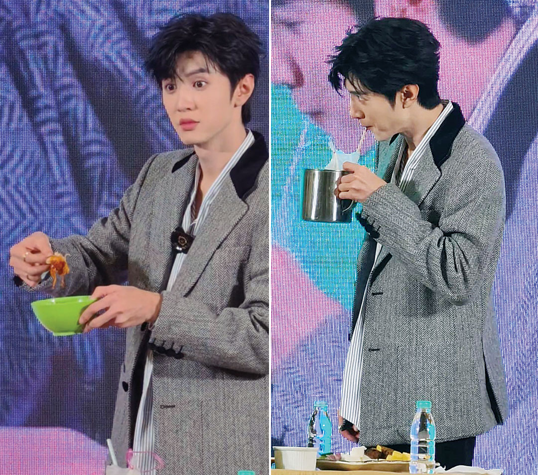 他说,这次来马也吃了榴梿,只是带苦的他不太习惯,反而有双峰塔造型的榴槤冰淇淋很好吃。主办方也在场为他提供了多道大马美食,让陈哲远现场品尝,满足他吃货的心态,只见他完全没有偶像包袱的在台上拿起筷子夹炒粿条大快朵颐,也入乡随俗用手吃印度煎饼。尝过美食后,陈哲远总结说,最爱印度煎饼的口感,配搭上咖哩酱汁很开胃,而饮料方面他独爱咖啡加茶的Cham,因为和他的洋名一样。