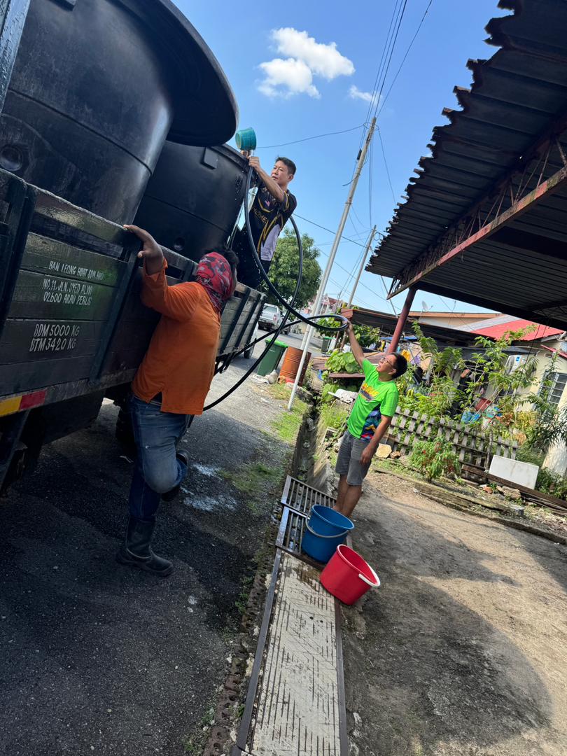 同时,民间热心人士和团体纷纷伸出援手。在新路马华主席林加新的协调下,玻州潮州公会会长林乙亮与马华玻州联委会主席蔡天喜出动罗里载水,为新路新村及周边受影响地区提供紧急供水。此外,新路义务消防队也协助载水,将水送入村中派发,以缓解村民断水困境。