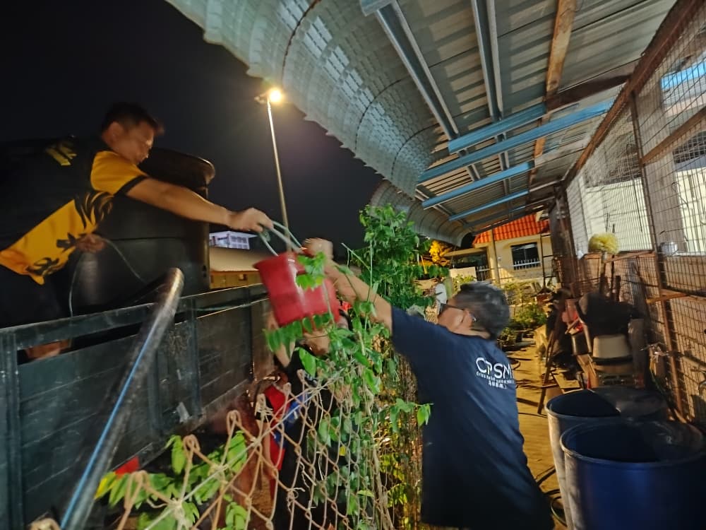 蔡天喜(右)与林加新为新路新村及周边受影响地区提供紧急供水。