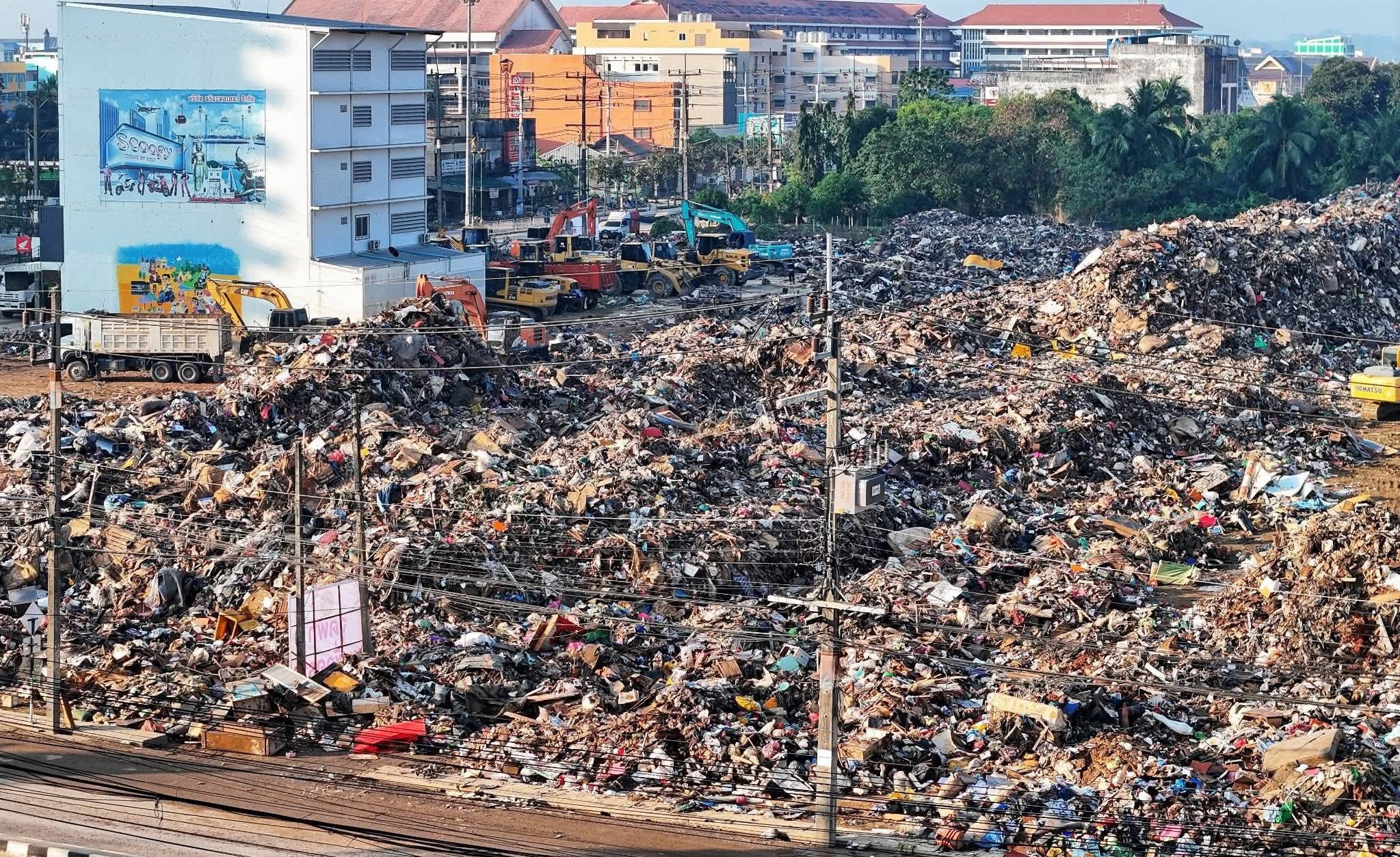 随着洪水退去,合艾市进入恢复阶段,人们开始清理家园及商店并丢弃的损坏物品,而丢弃的物品被堆积成一座又一座的小山,以等待进一步处理销毁。