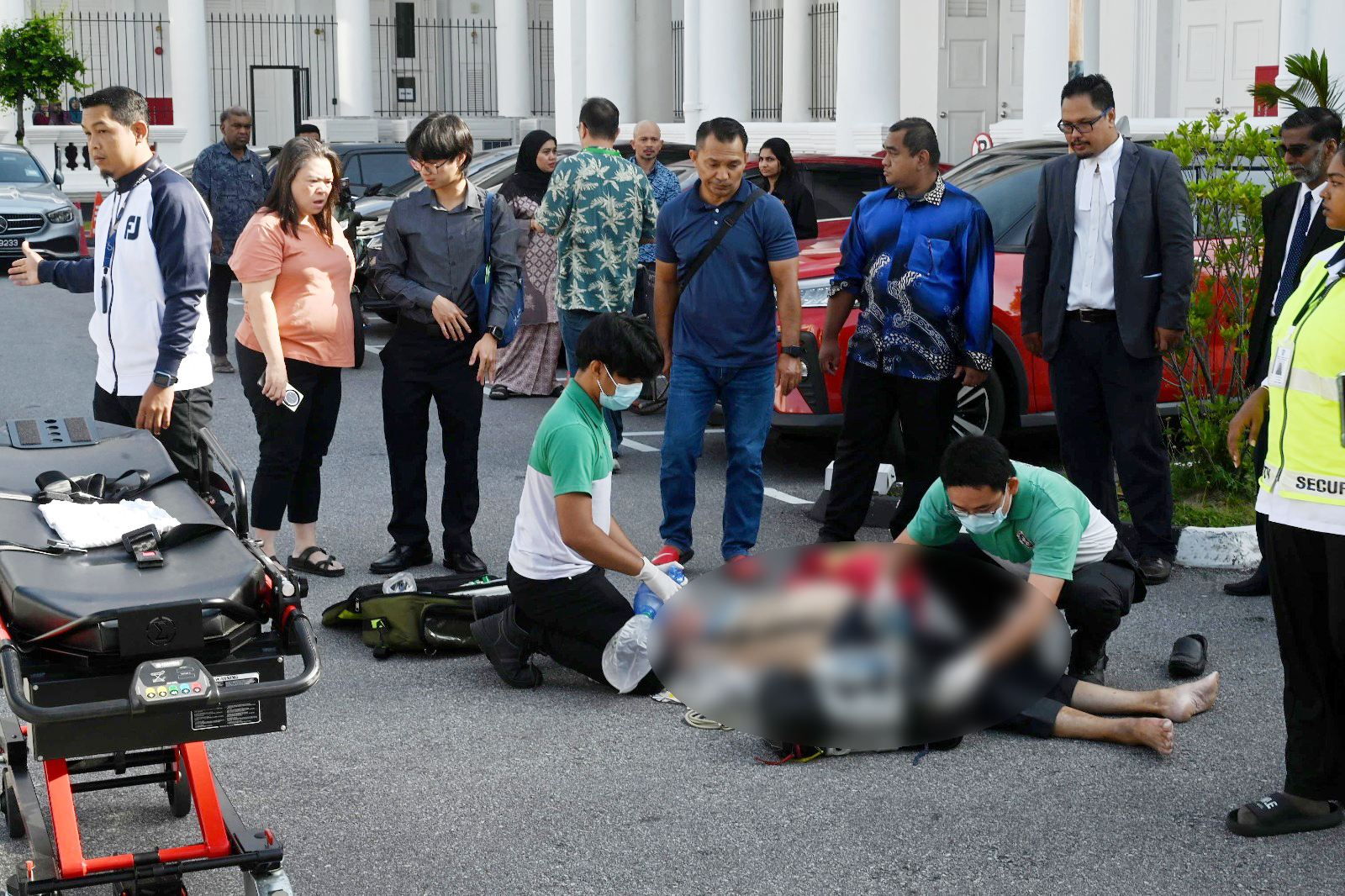 他说,州政府也鼓励所有膜拜场所也安装AED,所以在此事发生时,有人也前往法庭对面一所教堂借用安装在该处的AED。