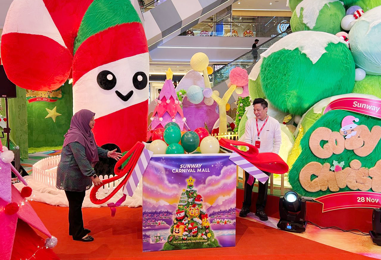 诗布朗再也双威嘉年华广场总经理蔡文友陪同马来西亚旅游促进局北马区副主任祖莱达,为温馨圣诞Cozy Cozy Christmas进行开幕仪式。当大礼物上的彩带拉开彩球升空,诗布朗再也双威嘉年华广场圣诞节庆活动也宣告开始。